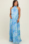 Navy Floral Smocked Ruffle Accent Jumpsuit