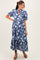 Navy Floral Split Button Collar Puff Sleeve Maternity Midi Dress