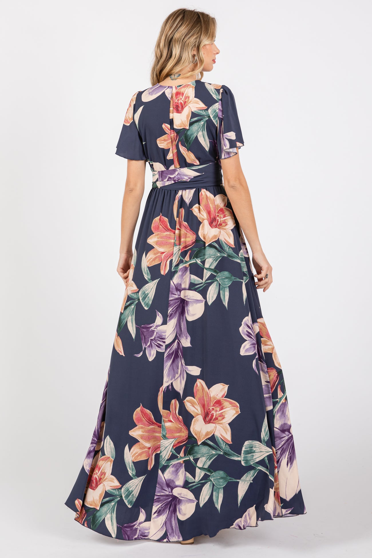 A floral print dress featuring short sleeves, a self-tie waist and a wrap v-neckline.