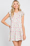 A solid midi dress with square neckline, crisscross strap detail in back and tiered skirt.