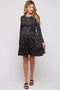 A camo print dress featuring short cuffed sleeves, side pockets and a rounded neckline.