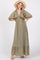 Olive Deep V-Neck Short Puff Sleeve Ruffle Maxi Dress