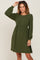 A solid hue, terry dress featuring long puff sleeves, a rounded neckline, and side pockets.