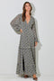 Orange Floral Border Print Long Sleeve Maxi Dress