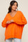 Orange Knit V-Neck Long Sleeve Top