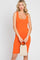 Orange Sleeveless Ribbed Knit Fitted Dress
