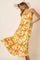 Orange Watercolor Print Satin Midi Dress