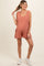 A solid maternity romper with a back cutout and two side pockets with button detail. Double lined.