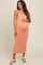 Embrace your pregnancy glow in this Peach Fitted Spaghetti Strap Maternity Midi Dress. Crafted from soft, stretchy fabric, it gently hugs your bump while providing all-day comfort. The flattering ribbed texture adds subtle detail, and the midi length offers a chic, modern silhouette. Adjustable spaghetti straps ensure a perfect fit as your body changes. Perfect for casual outings, baby showers, or layering with a cardigan for cooler days, this versatile dress combines style and comfort effortlessly. Celebrate your maternity style with this must-have, easy-to-wear dress available in a beautiful peach hue.