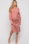 A basic solid maternity tank top in a ribbed material with a higher neckline and rounded hem.