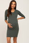 A solid fitted maternity midi dress in a ribbed knit. Features adjustable straps and side slit.