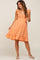 A sleeveless textured maternity dress featuring ruffle shoulder straps, a smocked top, a ruffle hem and a v-neckline.