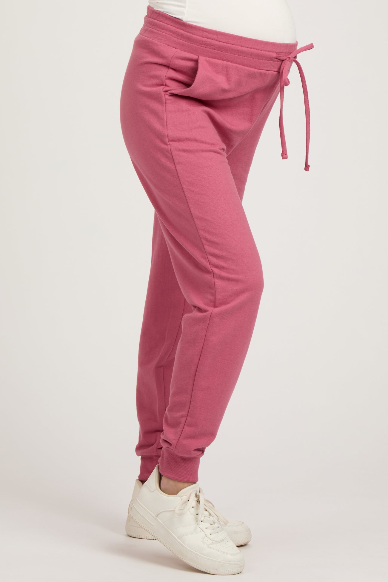 Pink Basic Drawstring Maternity Sweatpants