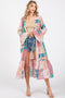 Pink Chevron Knit Cutout Fitted Maternity Midi Dress