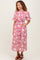 Pink Floral Ruffle Button Up Neckline Midi Dress