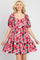 Pink Floral Sweetheart Neck Short Puff Sleeve Dress
