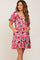 Pink Floral Sweetheart Neck Short Puff Sleeve Maternity Dress
