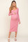 Details A solid ribbed knit maternity fitted midi dress with long sleeves and a wide v-neckline. Content + Care
