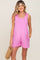A solid knit romper featuring a rounded neckline and knotted straps.
