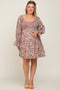 A multi-color striped ribbed maternity dress featuring adjustable self-tie ruching and a rounded neckline.