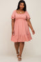 Pink Satin Puff Sleeve Midi Dress