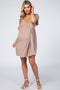 A solid hue maternity linen top featuring a split hem neckline, short cuffed dolman sleeves, and a side slit hi-lo hemline.