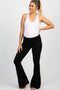 A soft knit, maternity top featuring a wrap front with tie closure, a v-neckline, and long sleeves. Lace bralette not included with top.