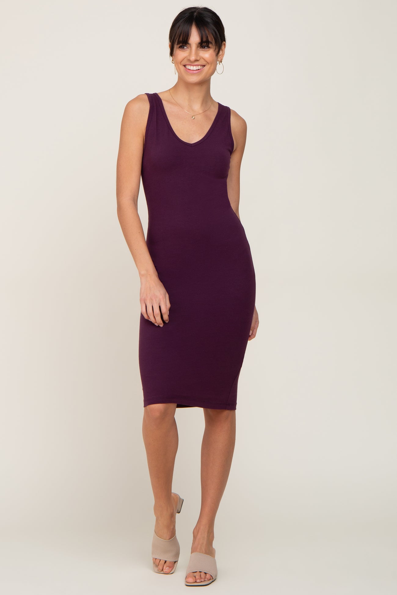 Plum Basic V-Neck Sleeveless Dress