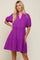 Purple Satin Ruffle V-Neck Short Sleeve Dress