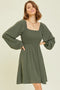 A striped shirt dress with a collared neckline, button down front and lining. Pocketed.
