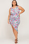 A sleeveless floral print maxi dress featuring a smocked top, adjustable cami straps, a ruffle hem and a square neckline. Skirt is partially double lined.