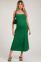 A solid hued fitted maternity dress featuring short sleeves, a rounded neckline and side ruching.