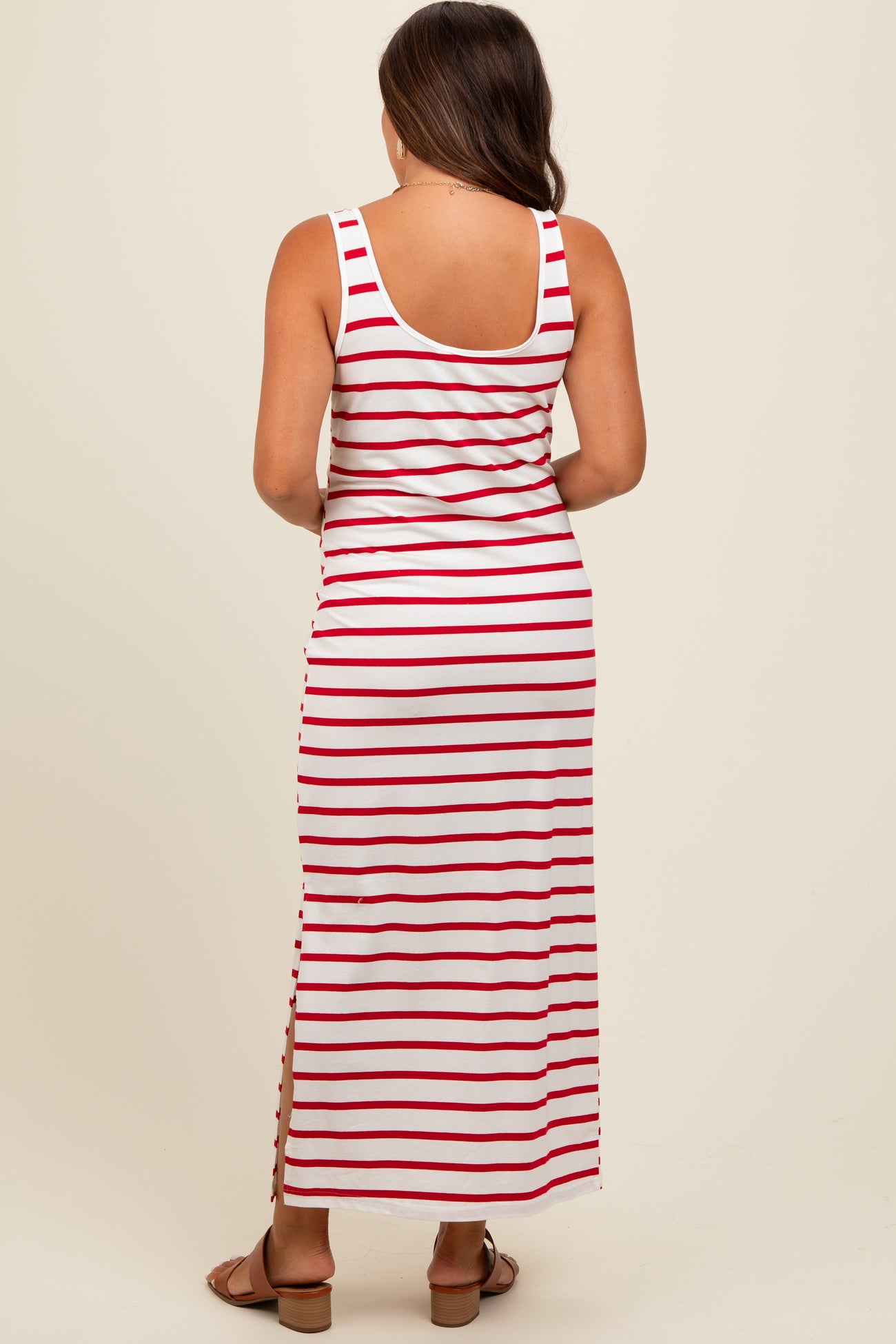 Red Striped Sleeveless Side Slit Maternity Maxi Dress