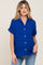 Royal Blue Collared Button-Down Short Sleeve Maternity Blouse