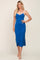 A color blocked midi dress featuring a v-neckline, adjustable cami straps and a side slit.