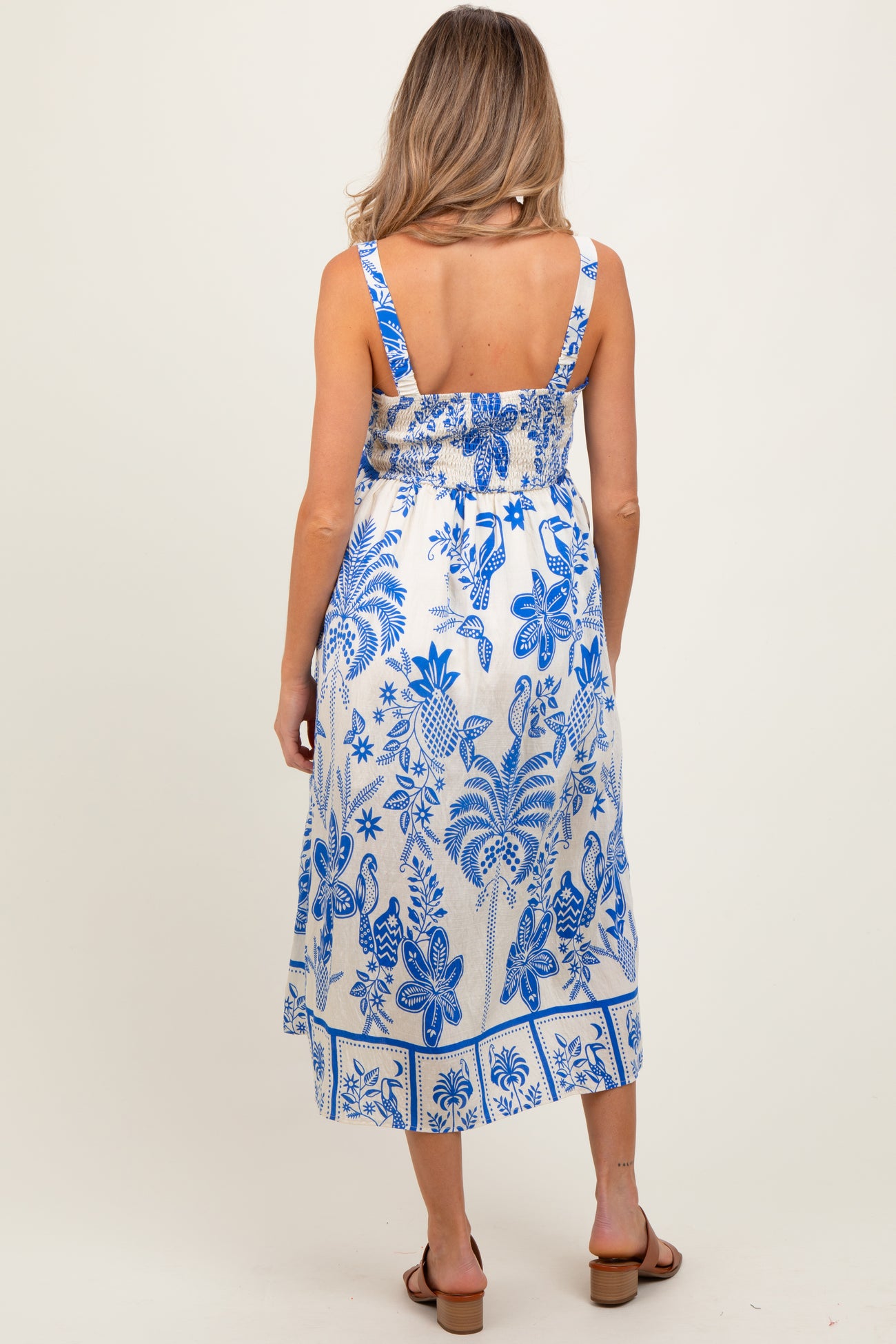 Royal Blue Floral Scallop Trim Maternity Midi Dress