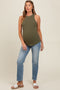 A solid maternity tank top featuring a squared neckline and ruched sides.