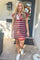 Rust Knit Striped Colorblock Collared Zip Up Mini Dress