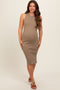 Rust Palm Print Smocked Short Sleeve Maternity Dress