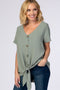 A solid rib knit maternity top featuring a scoop neckline and long sleeves.