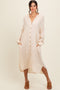 Rust Smocked V-Neck Puff Sleeve Midi Dress