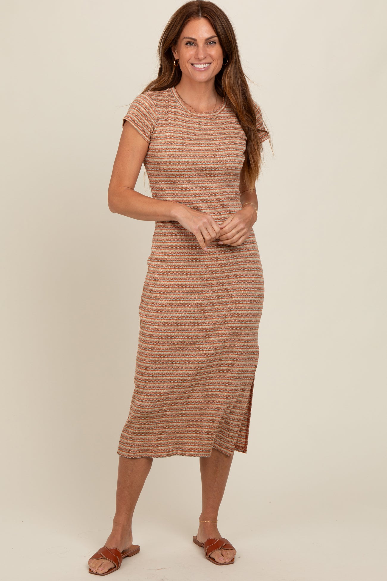 Rust Striped Side Slit Maternity Midi Dress