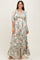 Sage Floral Print Elbow Sleeve V-Neck Tiered Maxi Dress