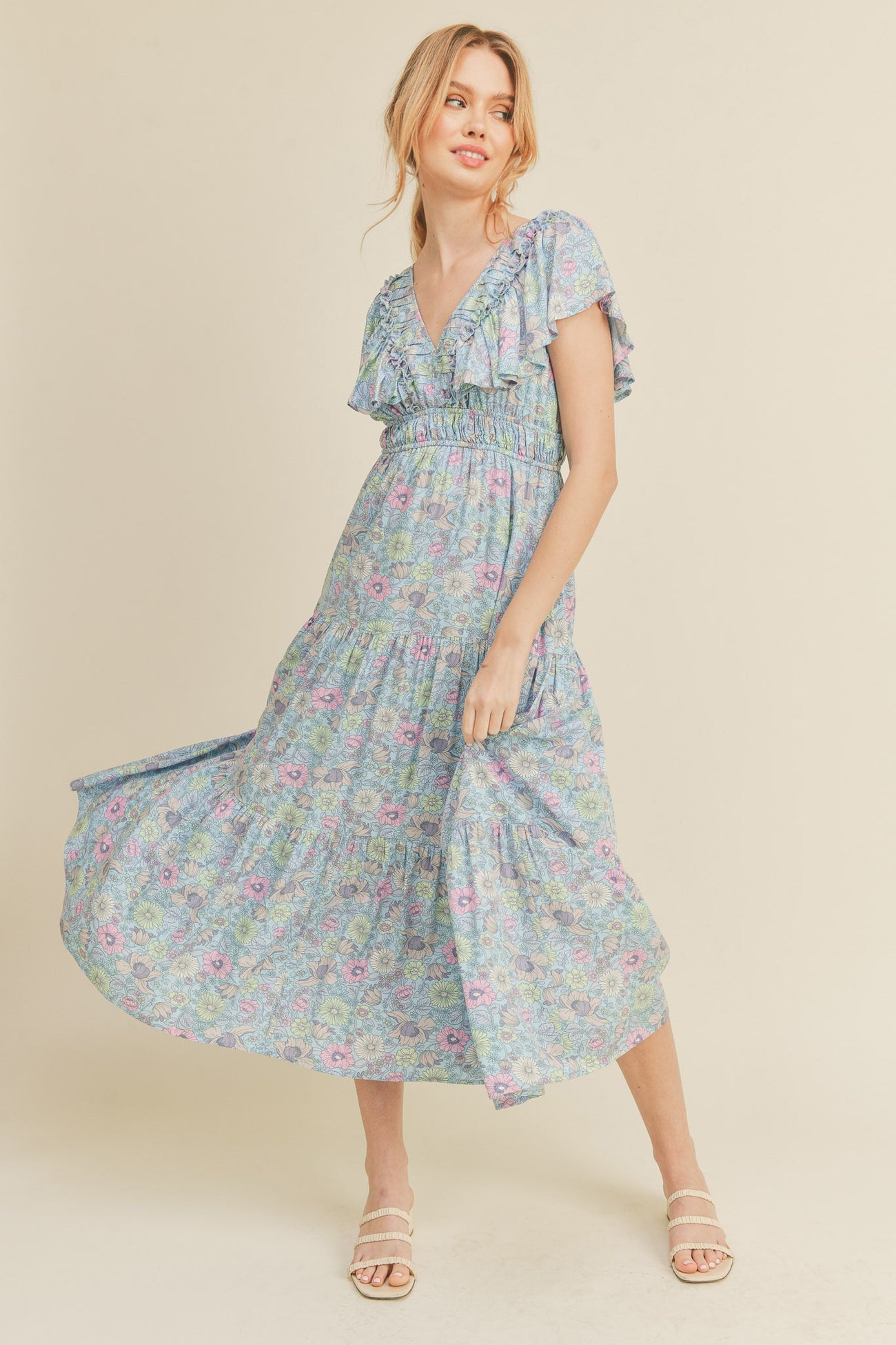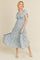 Sky Blue Floral Tiered Floral Midi Dress