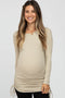 Taupe Animal Print Smocked Fitted Maternity Midi Dress