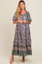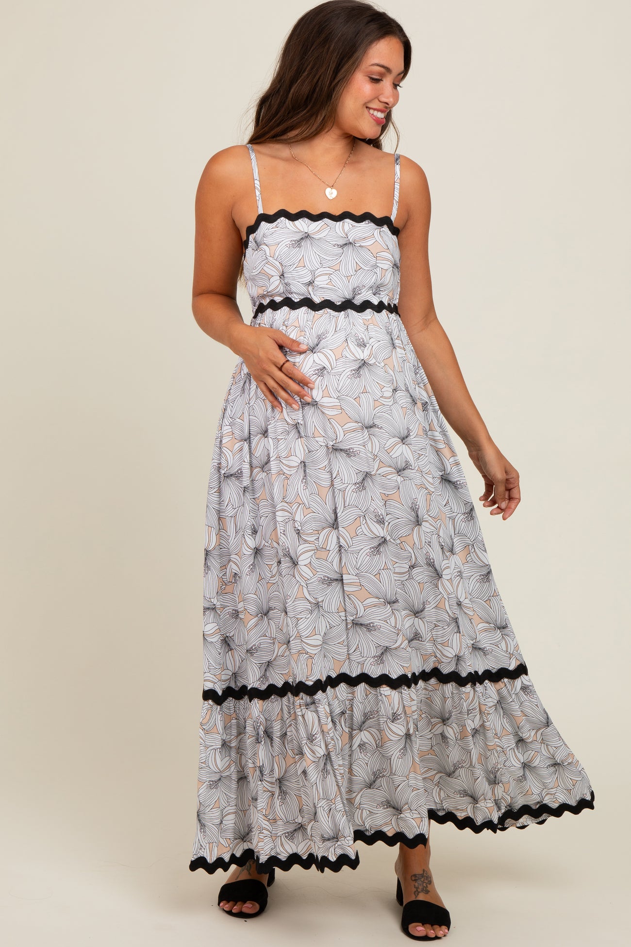 Taupe Floral Wavy Trim Maternity Maxi Dress