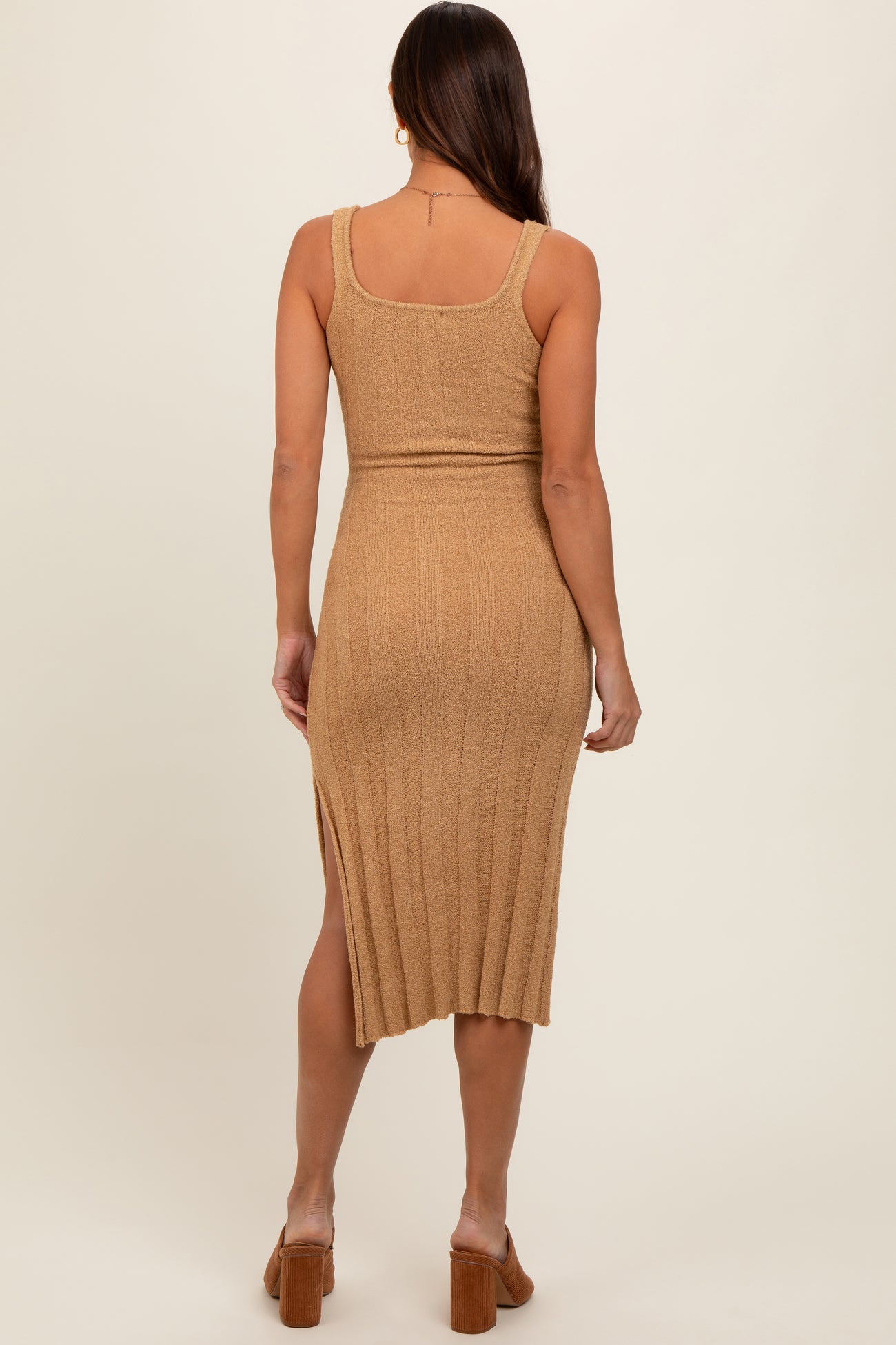Taupe Rib Knit Side Slit Maternity Maxi Dress