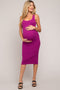 A ribbed knit fitted maternity midi dress featuring long sleeves and a collared v-neckline.