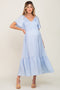 A ribbed sleeveless maternity tank top featuring ruched sides and a v-neckline.