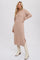 Taupe Waffle Knit Button Long Sleeve Midi Dress